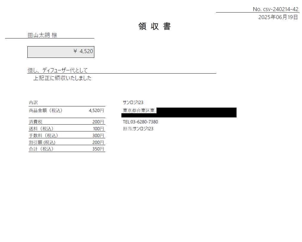 サンロジオプション機能のご紹介【購入者向け領収書PDF発行機能】 お知らせ 2025.06.12 注文が出荷済みになってから、伝票単位CSVと明細単位CSVファイルに「領収書URL」記載され、そこから領収書のダウンロードが可能になります。